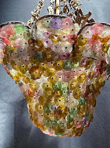 Lampadario con fiori in pasta di vetro, fine '800