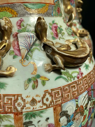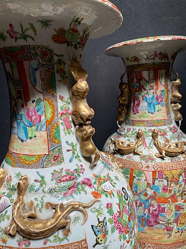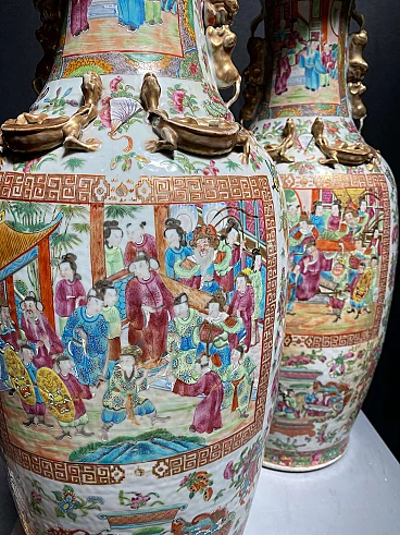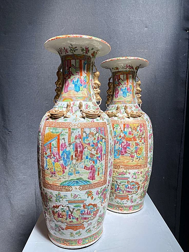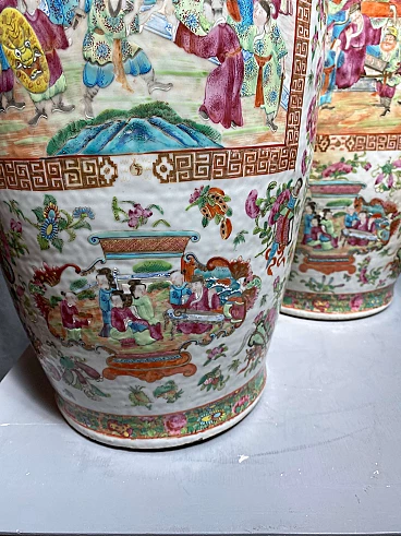 Coppia di grandi vasi in ceramica cinesi Canton, fine 1800
