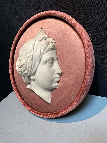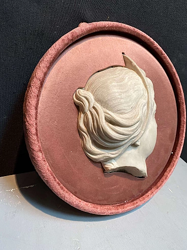 Tondo Neoclassico con profilo di dama in marmo su velluto rosa