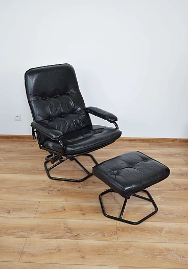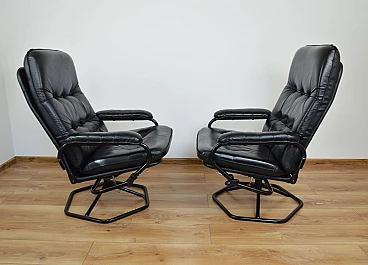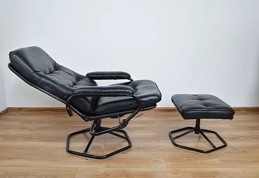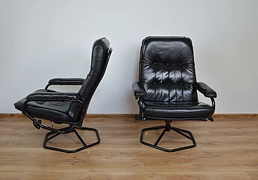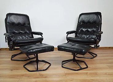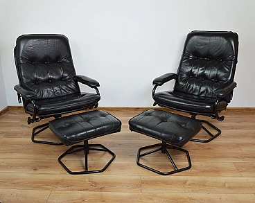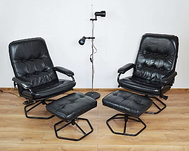 Coppia di poltrone in pelle con poggiapiedi di Unico, anni '70