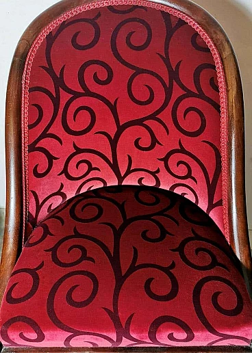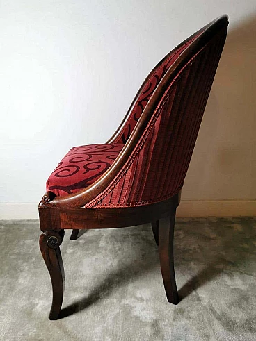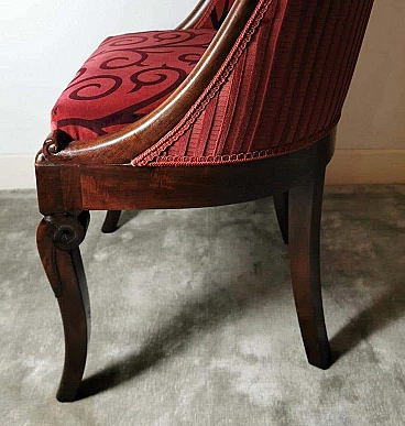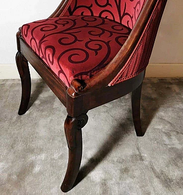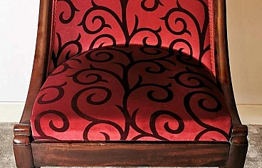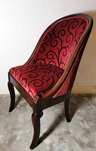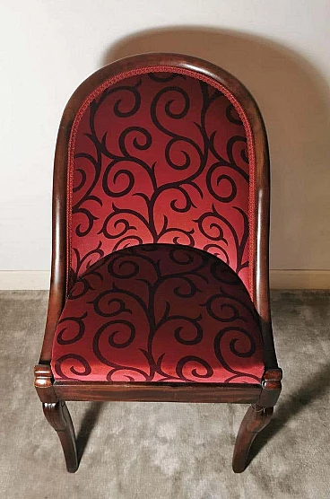 Sedia a pozzetto Tardo Impero in mogano e velluto Dedar, '800