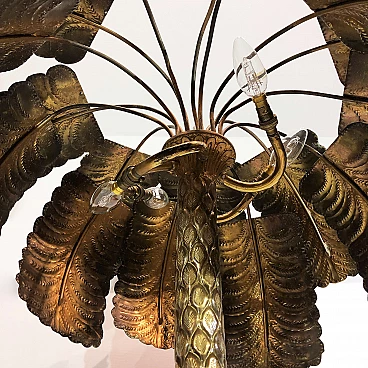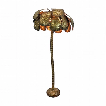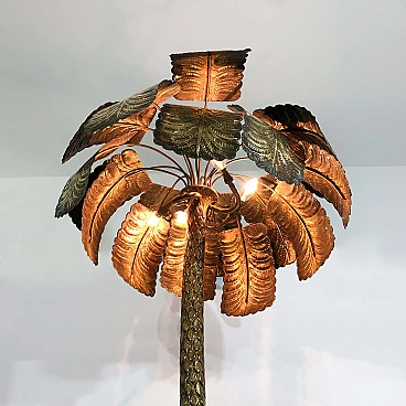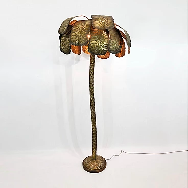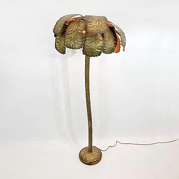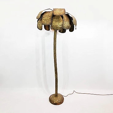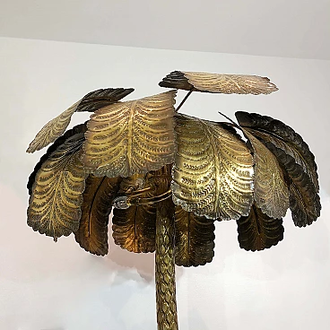 Questa stravagante lampada da terra in ottone a forma di palma, importata dalla Spagna, è uno splendido e rarissimo esempio di design al punto d'incontro tra brutalismo e opulenza hollywoodiana.