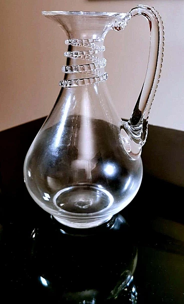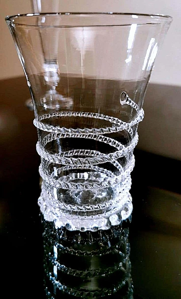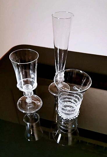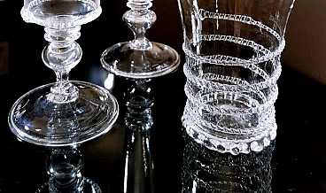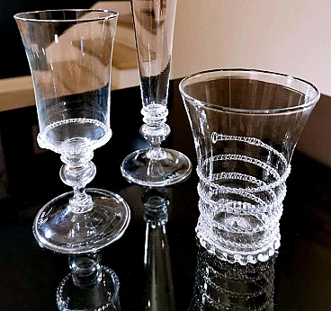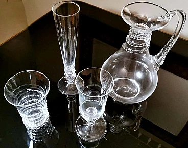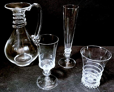 Servizio di 36 bicchieri e brocca in vetro soffiato di Murano con decorazioni, anni '50
