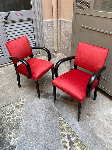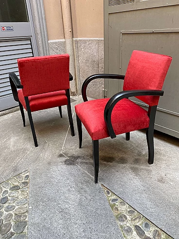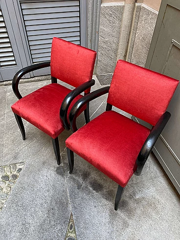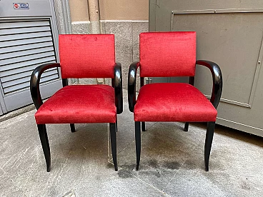 8 Poltrone francesi in velluto rosso e legno ebanizzato, anni ‘50