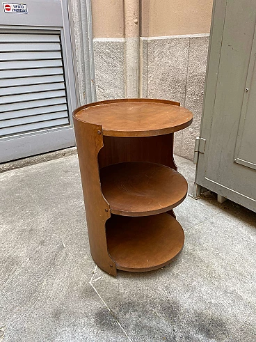 Comodino a 3 ripiani in legno con rotelle, disegno Space Age, anni ‘60