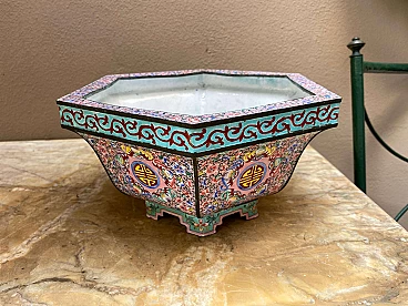 Jardiniere chinoiserie in metallo smaltato, 800