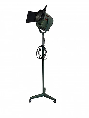 Faro da teatro della ditta IFF. Roma, anni '60. Con treppiede e con ruote, altezza regolabile da cm 150 a cm 200. Funzionante con attacco E27