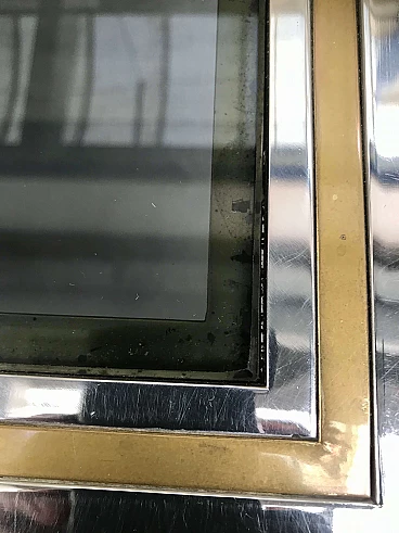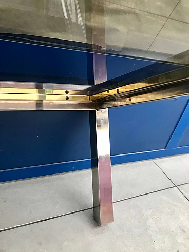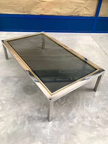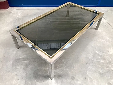 Tavolino in metallo, ottone e vetro fumè, anni ’70