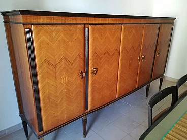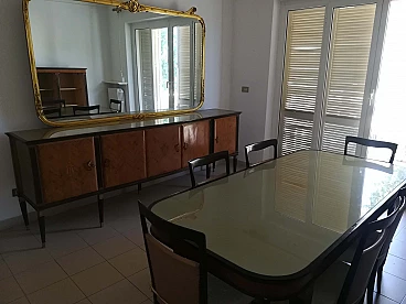 Tavolo da pranzo e 2 credenze in palissandro e ottone, anni '50
