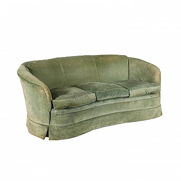 Divano a tre posti, imbottitura a molle, cuscini in piuma.