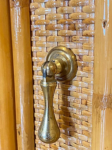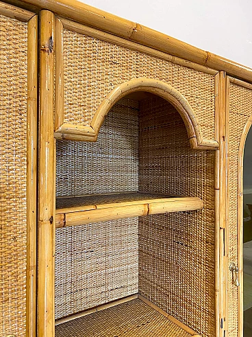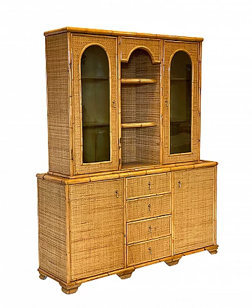 Credenza con alzata in bambù e vimini, anni '70