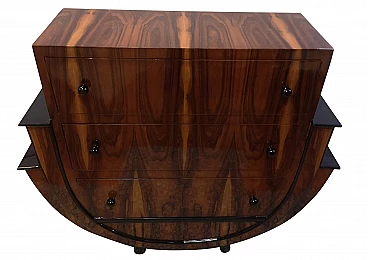 Cassettone art deco tutto in palissandro con 3 cassetti, forma ad una pomoli in legno tornito.