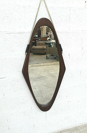 Specchio a rombo in stile scandinavo in teak, anni '60