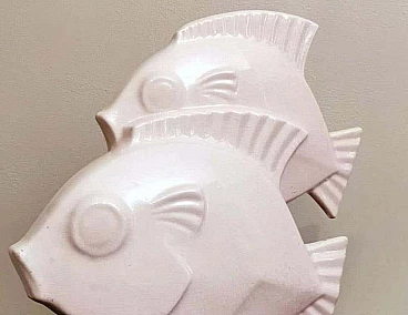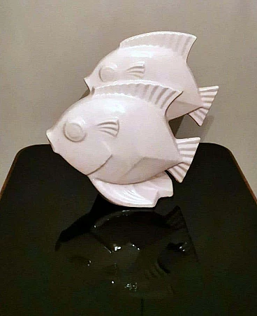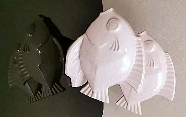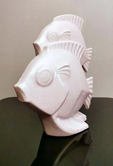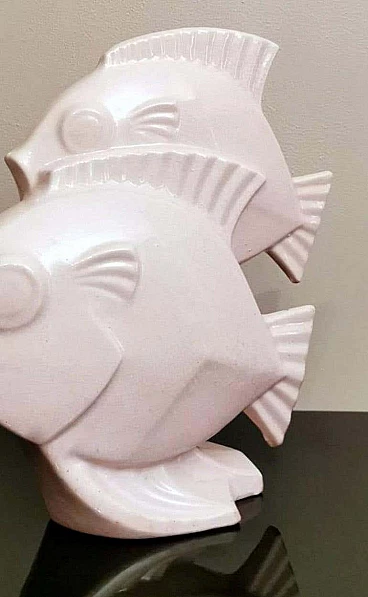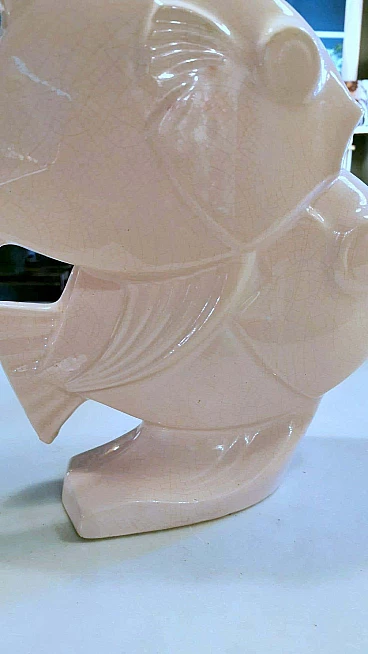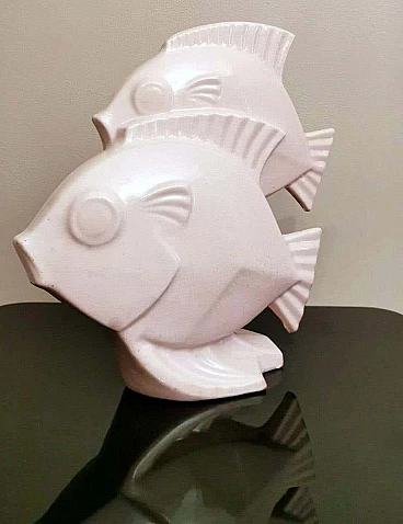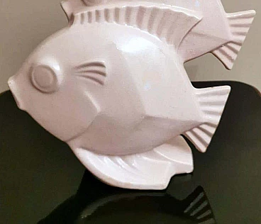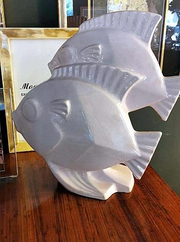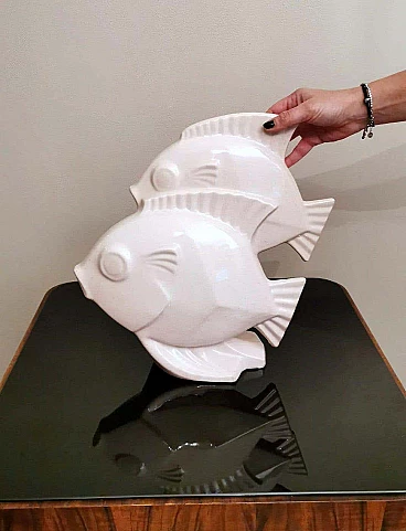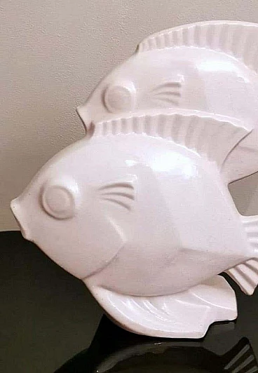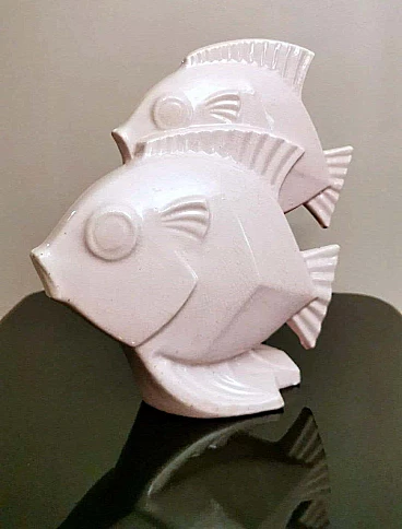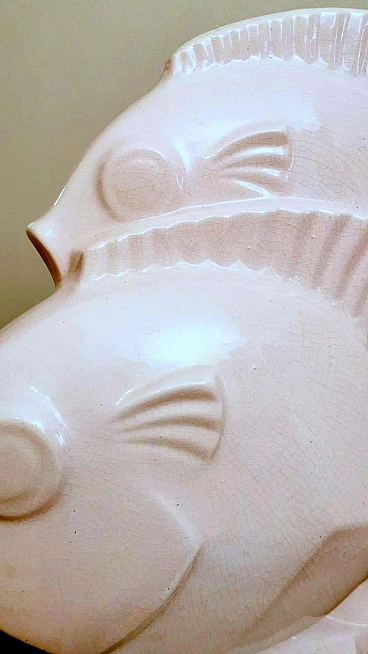 Scultura Art Deco di due pesci in porcellana craquelé, anni '30