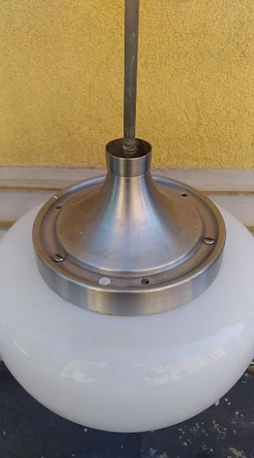 Lampada da soffitto in alluminio e vetro lattimo di Oscar Torlasco per Lumi, anni '60