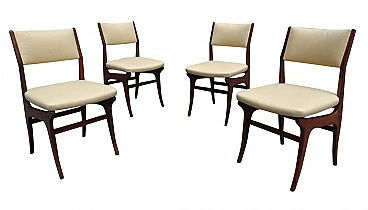 4 Sedie in legno e tessuto di Melchiorre Bega per Falegnameria Parmeggiani Marino Bologna, anni '50. Altezza seduta: 42cm.