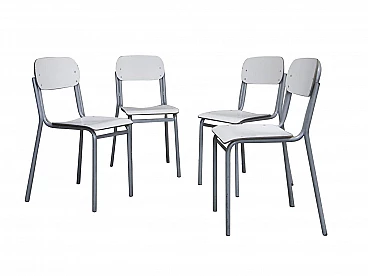 Set composto da 4 sedie da scuola in formica bianca e metallo, anni '70. Classico design per sedia da mensa.