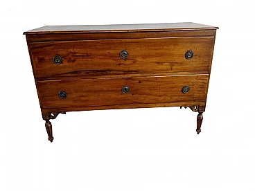 Cassettone in noce a due cassetti con fianco portante della fine del '700, Veneto. In buone condizioni, presenta qualche restauro subito nel corso del tempo.