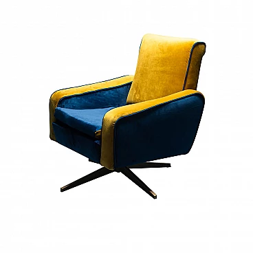 Poltrona girevole Prospect in velluto giallo e blu, anni '60