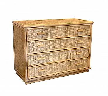 Cassettiera in bambù e vimini anni 70, 4 cassetti