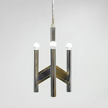Lampadario a 3 luci Chevron in metallo e ottone di Sciolari, anni '70