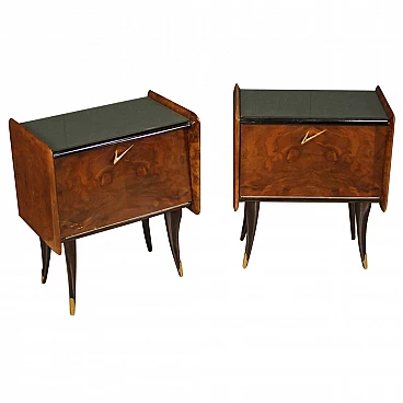 Coppia di comodini in radica di noce e mogano, anni 70