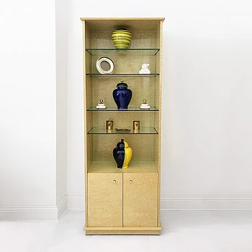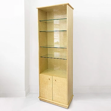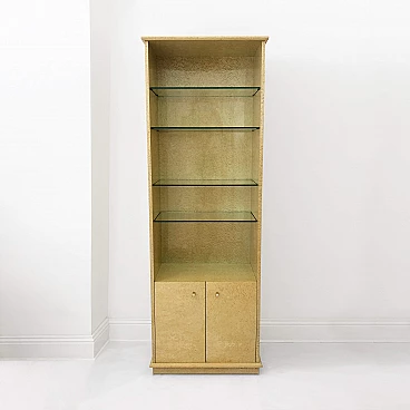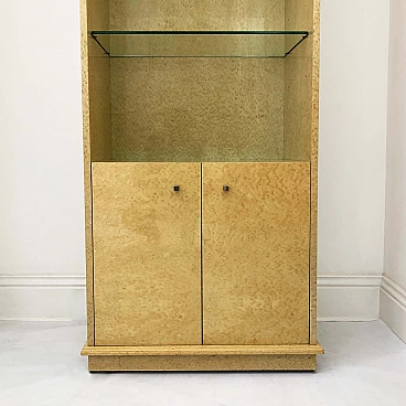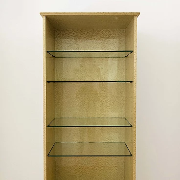 Vetrina in acero impiallacciato con ripiani in vetro, anni '80
