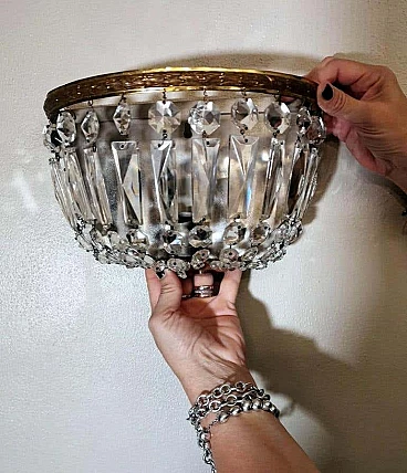 Applique in stile Luigi XVI in ottone dorato e cristallo, anni '50