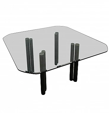 Tavolo quadrato Eta Beta in acciaio con piano in vetro di Marco Zanuso per Zanotta, anni '70.
