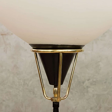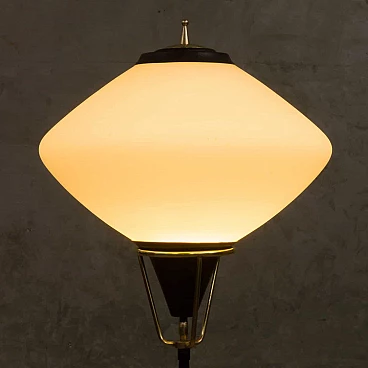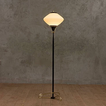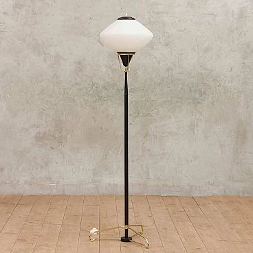 Lampada da terra in ottone, metallo verniciato e vetro opalino di Stilnovo, anni '60
