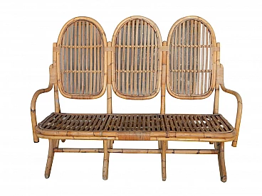 Divani a tre posti in vimini, manifattura italiana, anni '60.