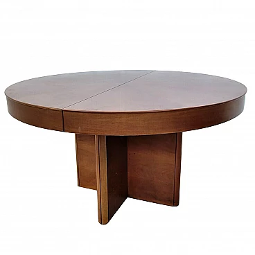 Tavolo rotondo allungabile Fiorenza in noce di Tito Agnoli per Molteni, anni '70.