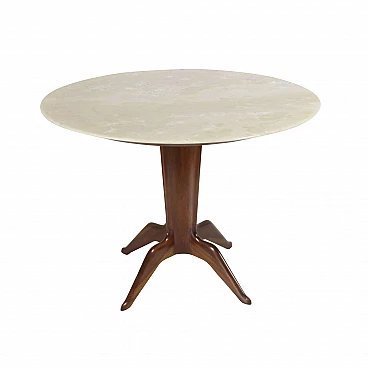 Tavolo con base in legno completamente restaurato e piano in onice.