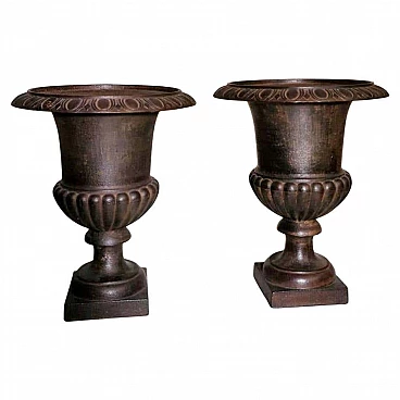 Coppia di vasi in stile mediceo in ghisa, anni '50