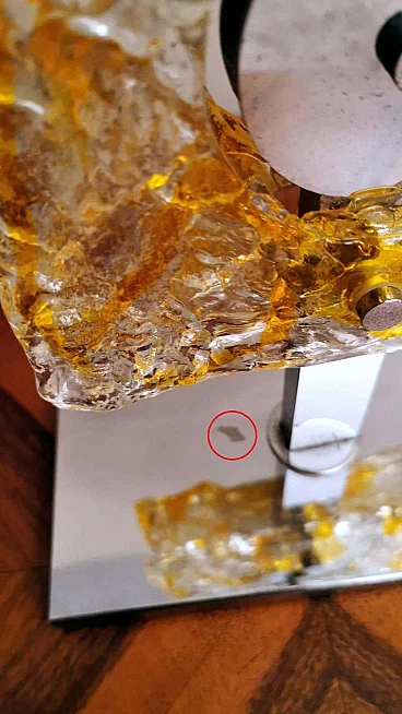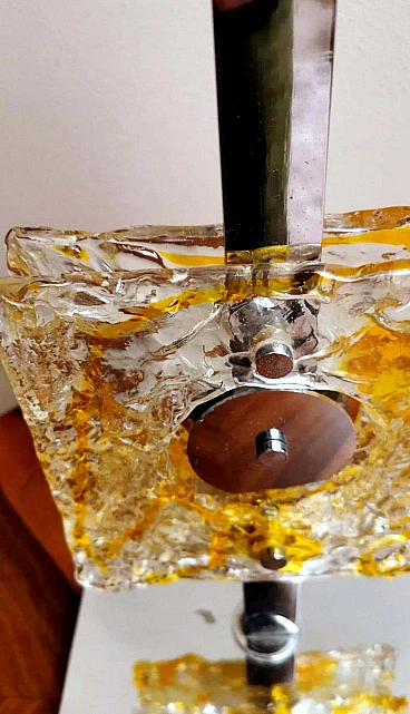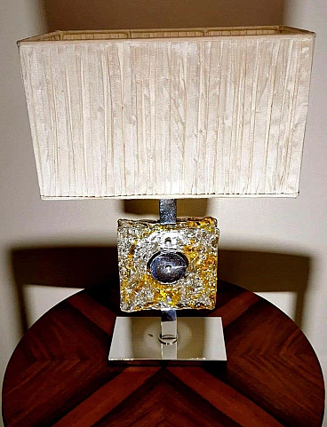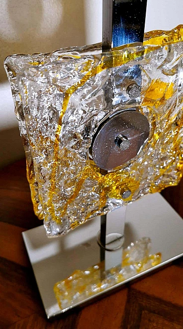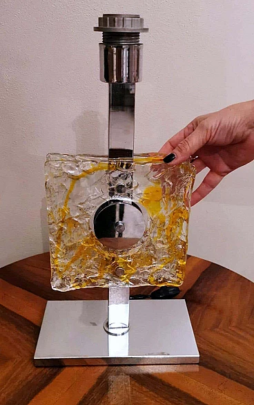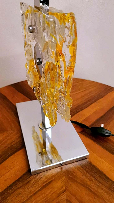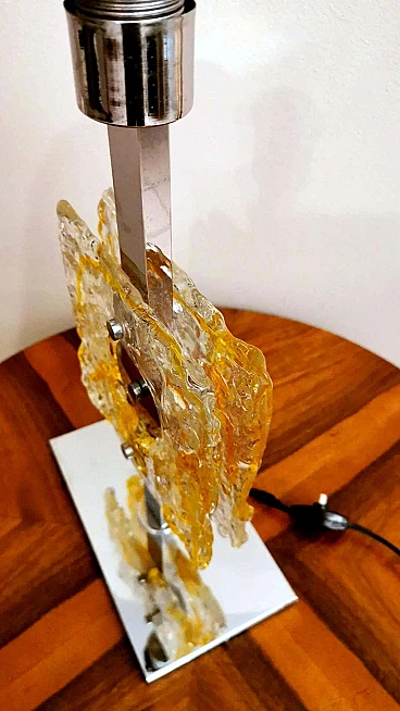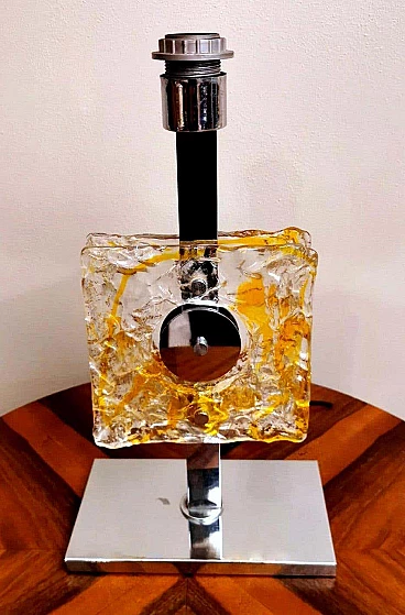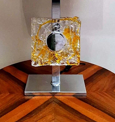 Lampada da tavolo in metallo nichelato e vetro di Murano di Mazzega, anni '60