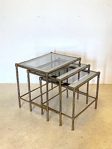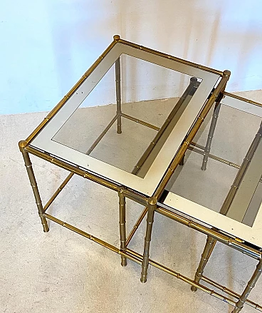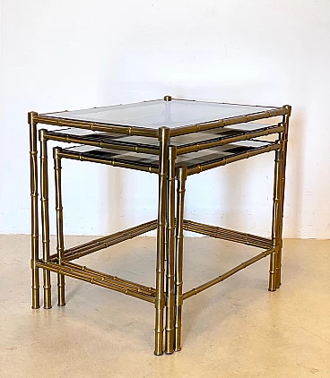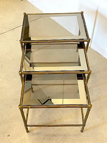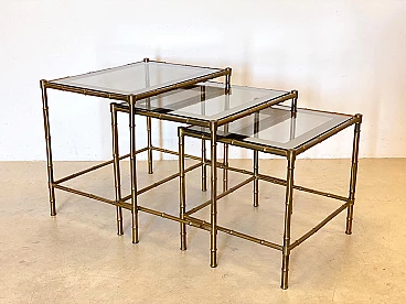 Tavolini a nido in ottone foggia di bambù, anni '70