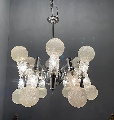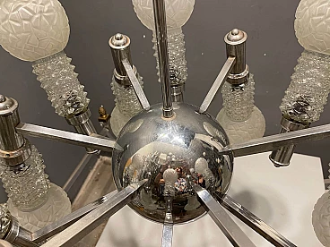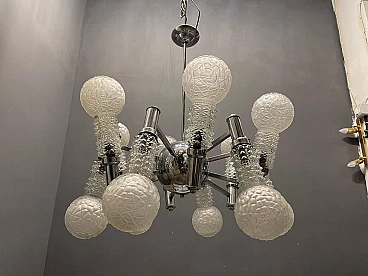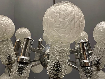 Lampadario Sputnik in vetro con struttura cromata, anni '70