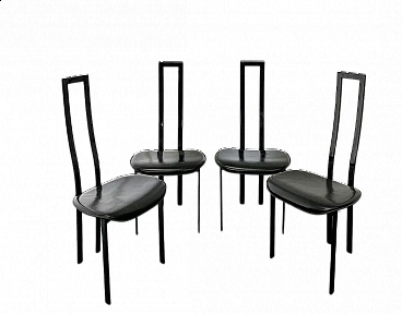 4 Sedie in pelle e acciaio di Giorgio Cattelan, anni '70