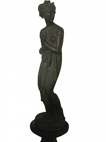 Statua in gesso della Venere Italica o Venere al bagno di Antonio Canova, realizzata nei primo quarto del secolo scorso in gesso, colorato come d'uso e consuetudine con una patina nera. Ideale per un arredamento d'interni.