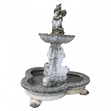 Grande fontana da giardino in graniglia con putto e vasca, inizio '900