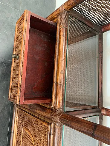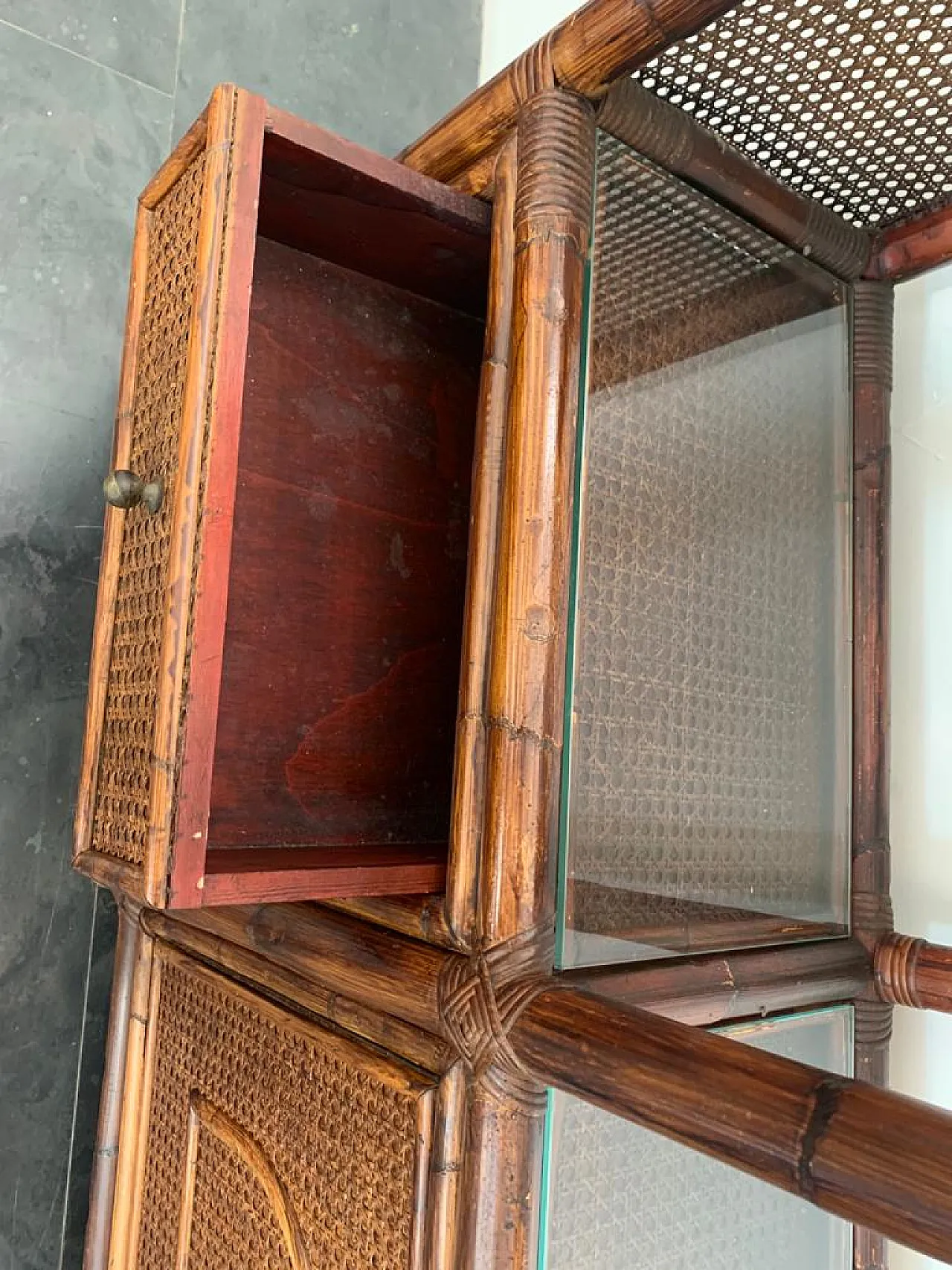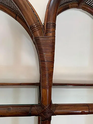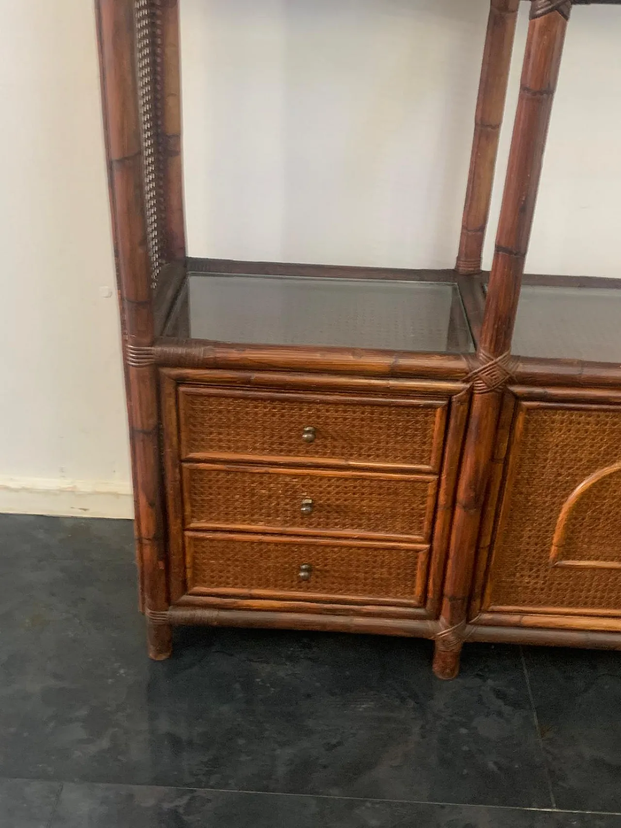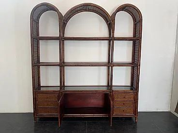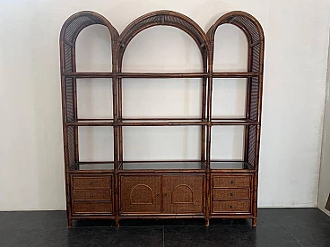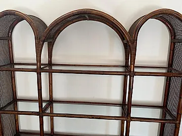 Libreria in rattan Malacca e cristallo di Vivai del Sud, anni '70
