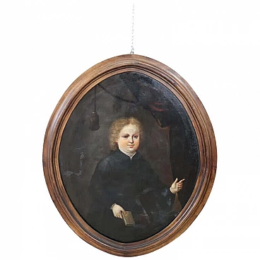 Dipinto antico ritratto ovale olio su tela Sec. XVIII