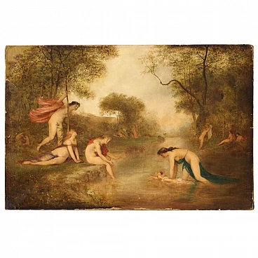Ninfe al bagno, dipinto ad olio inglese, '800