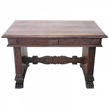 Scrivania antica in rovere scolpito stile rinascimento inizi Sec XX