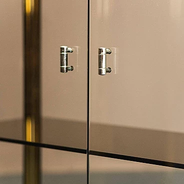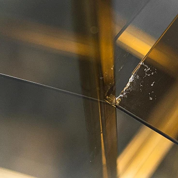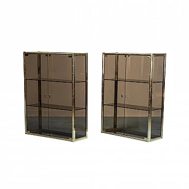 Vetrina in metallo dorato e vetro fumé, anni '70