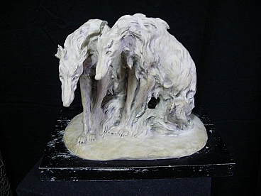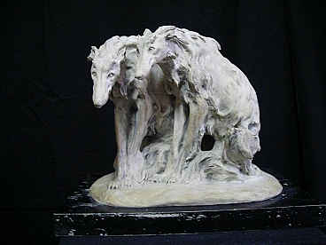 Tornati, Coppia di levrieri russi, statuetta in terracotta, inizio '900