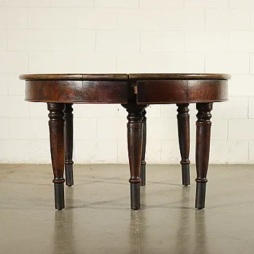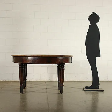 Tavolo allungabile in legno di noce con rotelle in ottone, '800