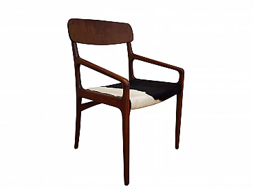 Una poltroncina unica nel suo genere. Prodotto nel 1950 circa. Completamente ristrutturata da un artigiano, tappezziere di mobili. Nuovissima imbottitura con tappetino in cocco. Nuova foderato in pelle bovina naturale al 100% di qualità. Legno di faggio tinto. Componenti in legno non presenta difetti, ma può mostrare lievi tracce d'uso. Questo oggetto d'epoca è in ottime condizioni perché è stato rinfrescato con nuove tappezzerie e/o rifiniture.