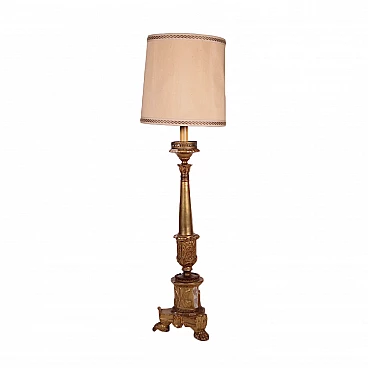 Torciere trasformato in lampada, intagliato e dorato a guazzo nella parte frontale.