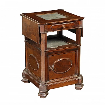 Sorretto da quattro piedini, nella parte inferiore presenta un'antina decorata con una cornicetta ovale, riproposta anche sui fianchi; il piano presenta un inserto in marmo grigio bardiglio. Viene a formarsi un vano centrale grazie ai montanti che proseguono e sostengono un ulteriore piccolo pianetto, che presenta un cassetto nella fascia sottopiano. Anche qui il pianetto presenta un inserto in marmo ed è dotato di due alette laterali che consentono di allargare la superficie d'appoggio.